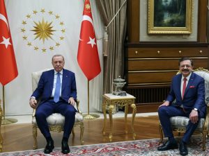 Cumhurbaşkanı Recep Tayyip Erdoğan, Türkiye Odalar ve Borsalar Birliği (TOBB) Başkanı Rifat Hisarcıklıoğlu’nu Cumhurbaşkanlığı Külliyesinde kabul etti.